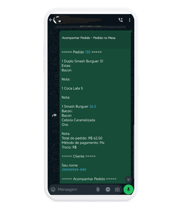 Receba seus pedidos de forma automatizada no WhatsApp.
